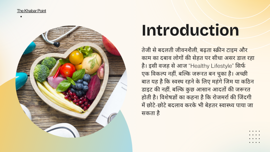 तेजी से बदलती जीवनशैली, बढ़ता स्क्रीन टाइम और काम का दबाव लोगों की सेहत पर सीधा असर डाल रहा है। इसी वजह से आज “Healthy Lifestyle” सिर्फ एक विकल्प नहीं, बल्कि जरूरत बन चुका है। अच्छी बात यह है कि स्वस्थ रहने के लिए महंगे जिम या कठिन डाइट की नहीं, बल्कि कुछ आसान आदतों की जरूरत होती है। विशेषज्ञों का कहना है कि रोजमर्रा की जिंदगी में छोटे-छोटे बदलाव करके भी बेहतर स्वास्थ्य पाया जा सकता है